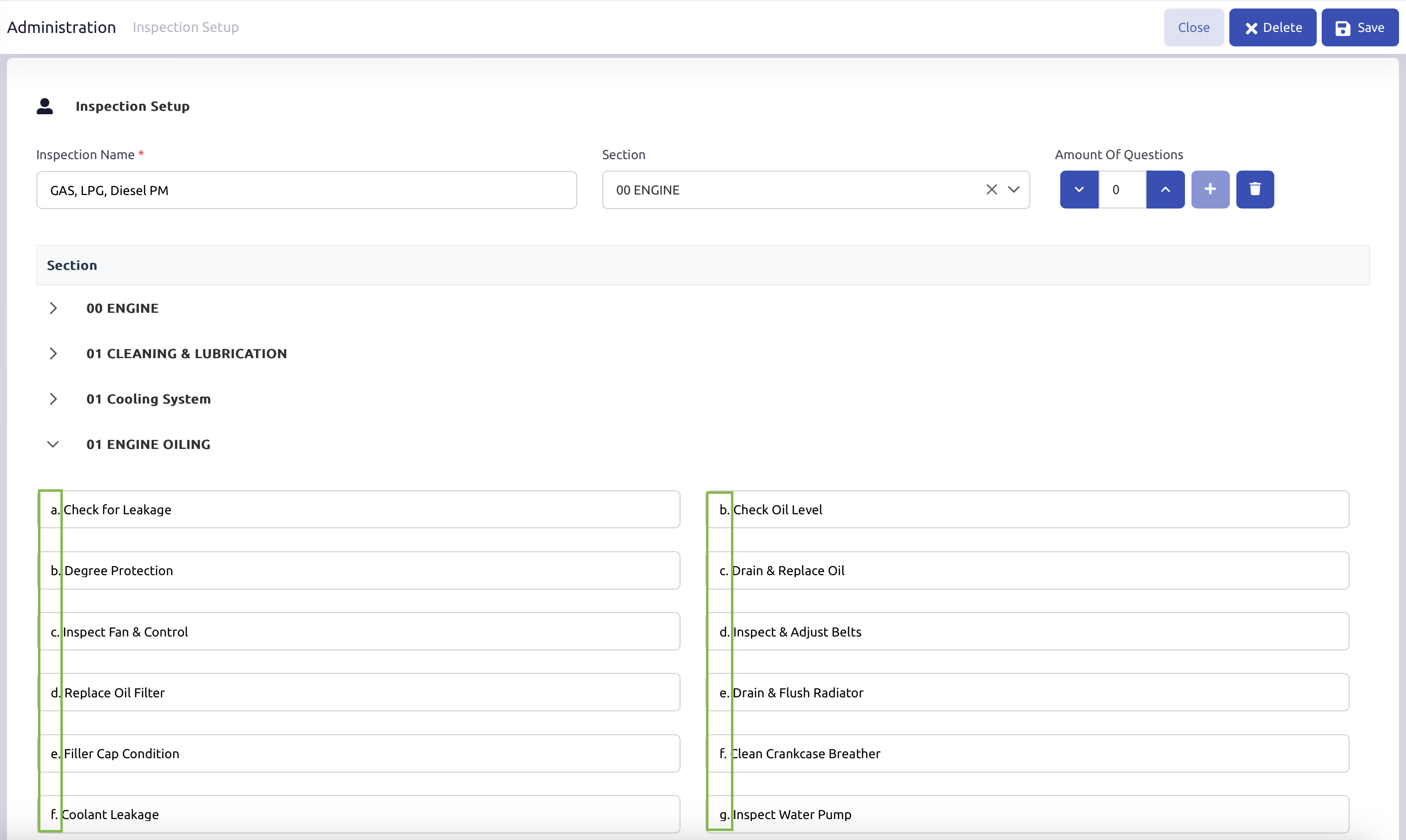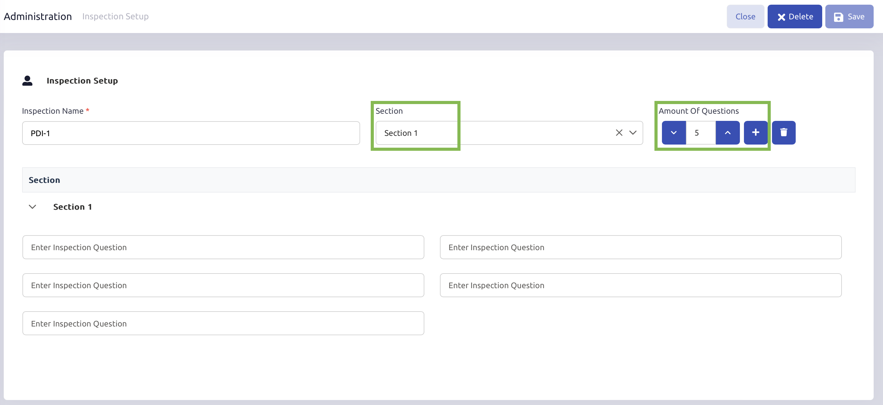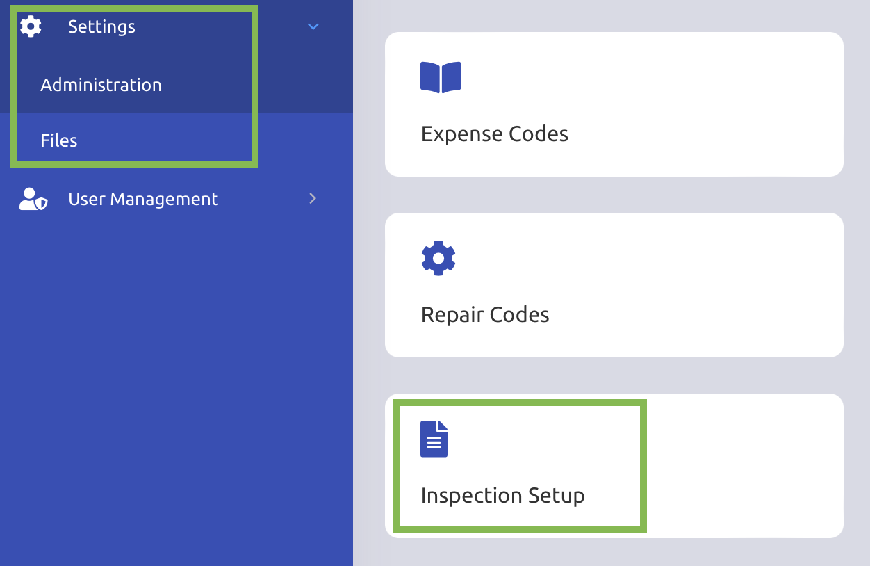 Navigate to Settings > Administration > Inspection Setup.