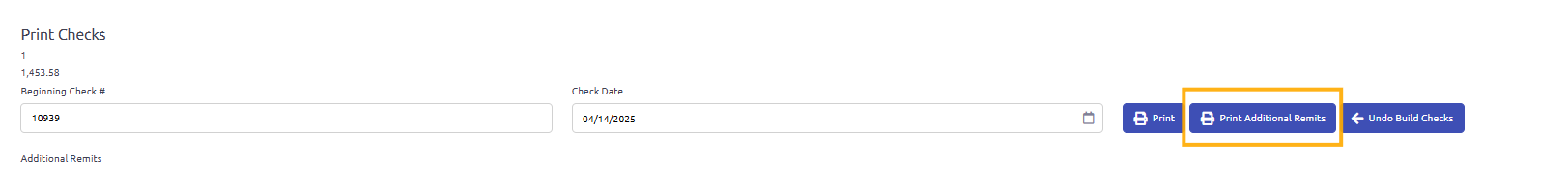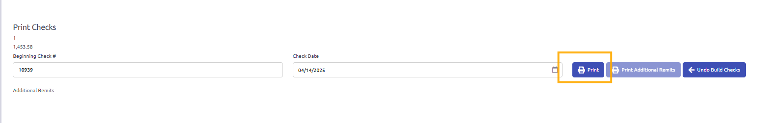 • Print Settings: Clicking the print icon allows users to toggle whether a field is printed on the check.