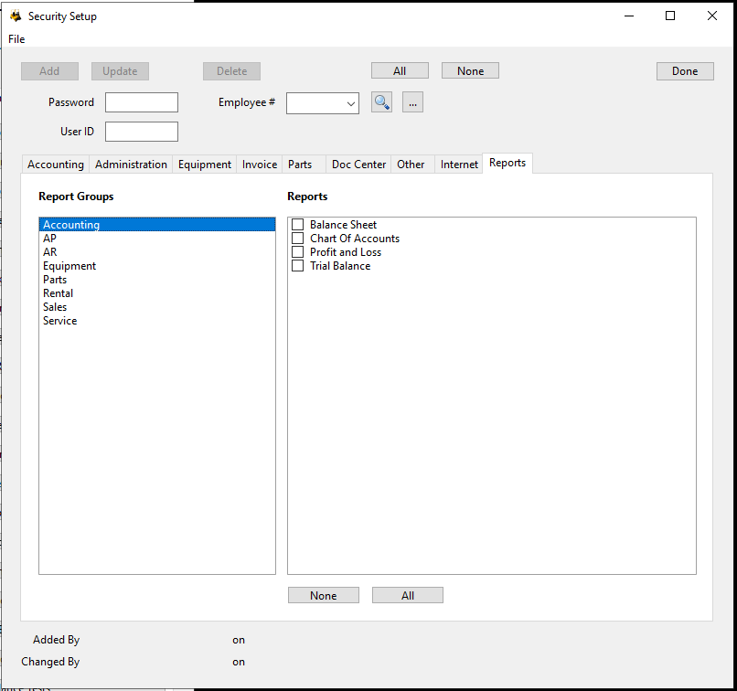 To get access to the latest version and latest catalog of reports one person who has Administration access in our company needs to click the Update button. This will pull the latest version of our provided reports from the Softbase repository. These will then be available to all users who have security rights to those reports. Please note, new reports are released regularly so it is important to continue to update reports often.