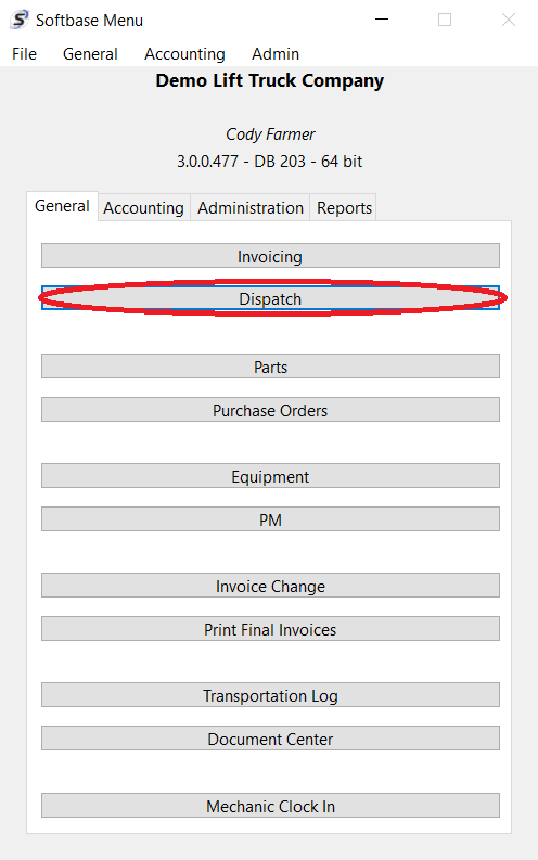 Dispatch - The Dispatch button will not appear until a Van/Mechanic is selected.