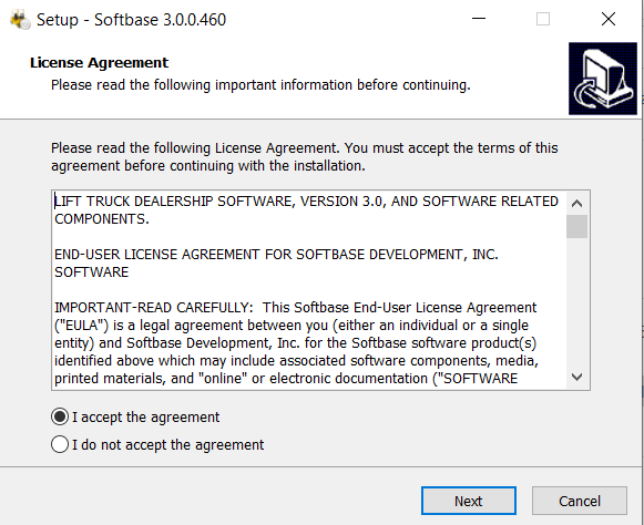- Here is an initial screen that will you will see when running the install to accept the License Agreement of the Application.