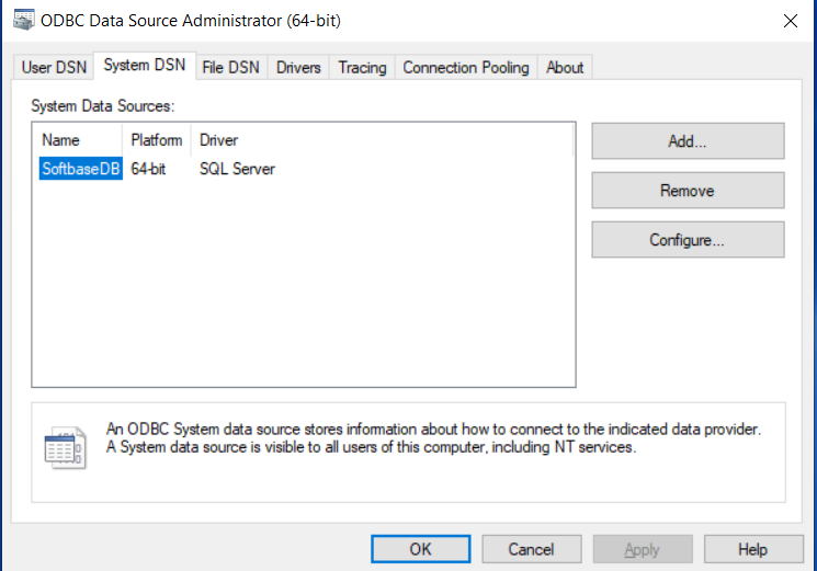 - Make sure you choose ODBC 64-Bit if you installed the Softbase Client Application for Windows 64-Bit. If you happen to be running a Windows 32-Bit machine then ensure you choose that version. The version of the ODBC Drivers should match the version of the Softbase Window Client you installed.