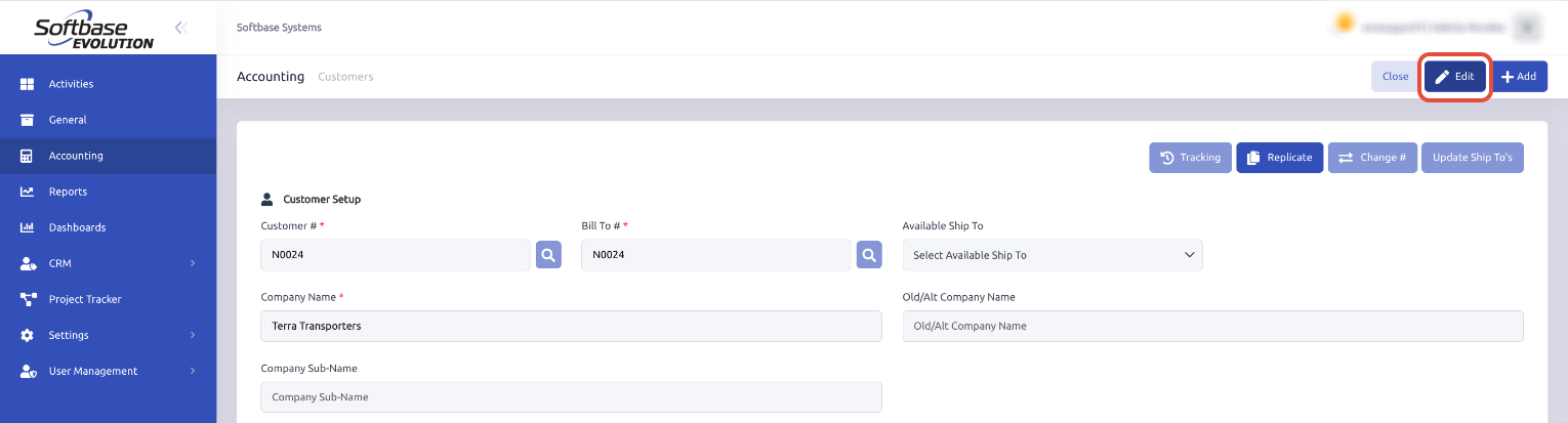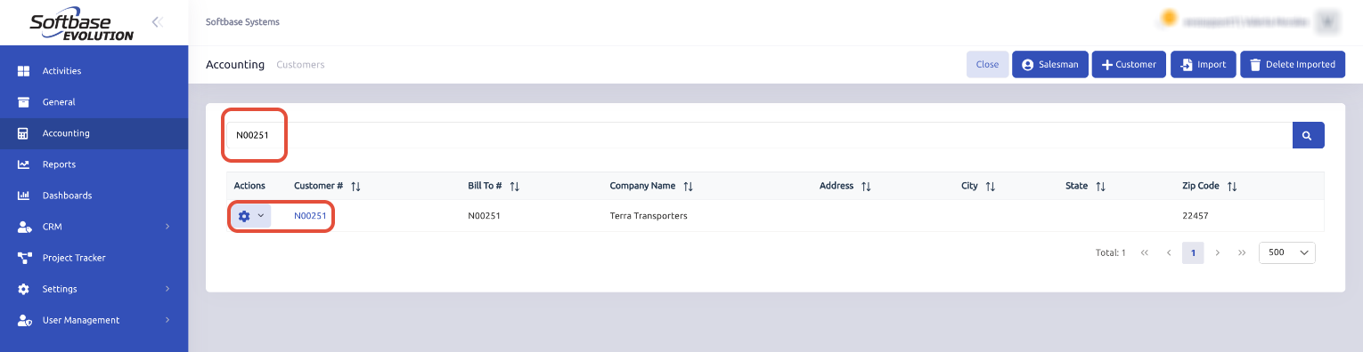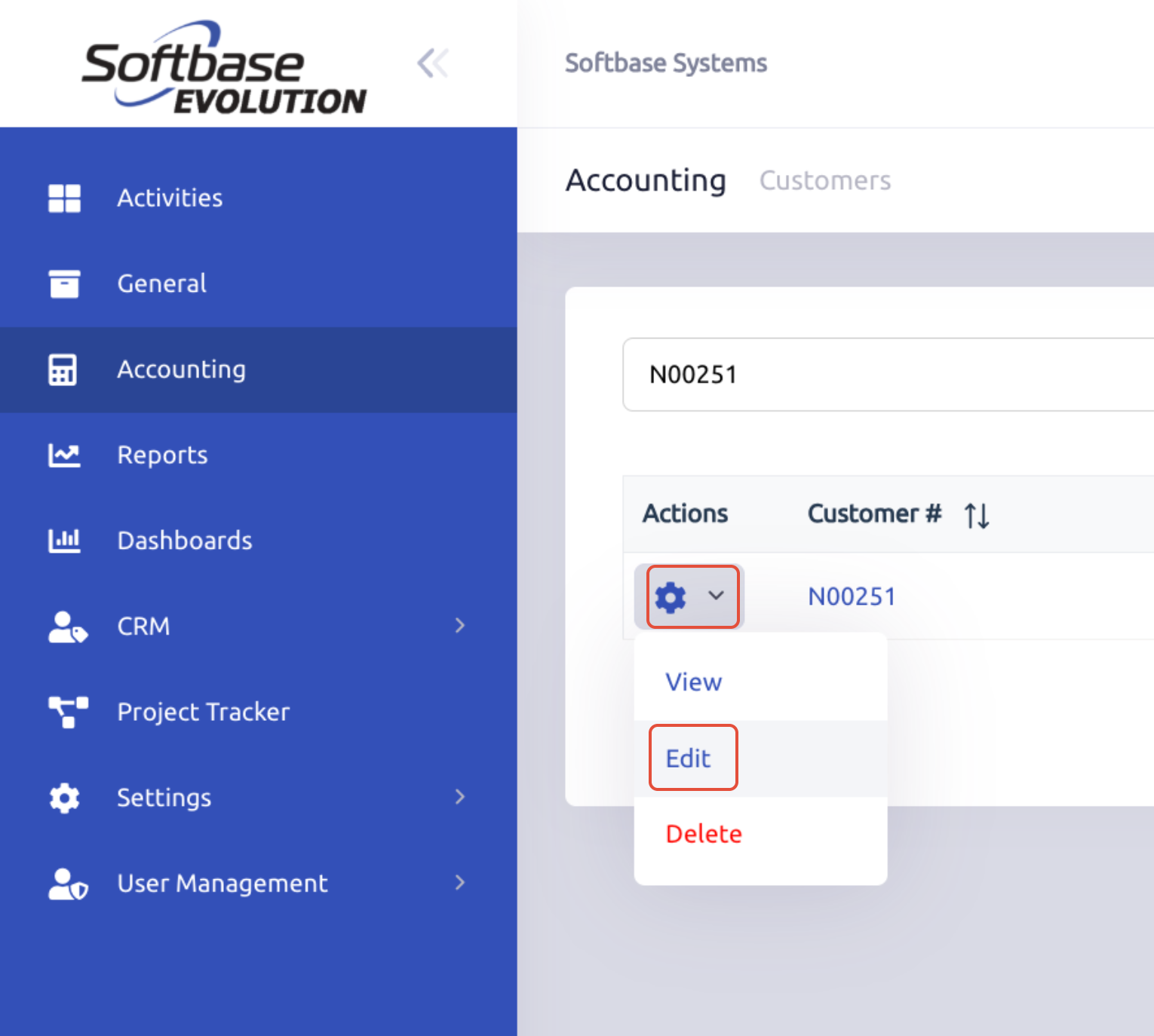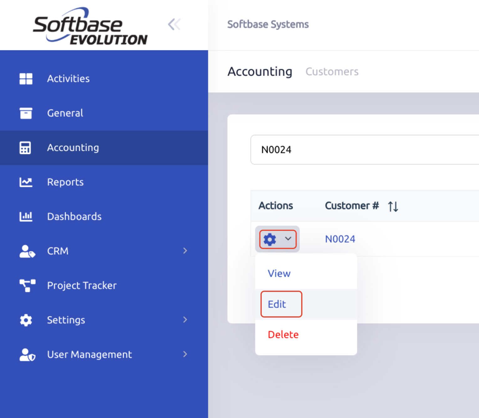 - Search for the customer and open their record / Click on the Gear icon and select Edit