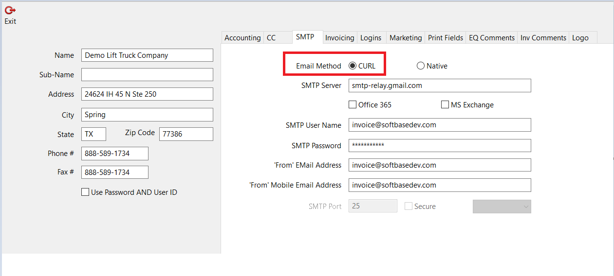 There are two options for how Softbase sends emails; CURL and Native. The native method will send the email and not wait for a response, an asynchronous process. The CURL method will wait for a response before it moves on to sending the next email, a synchronous process. It is recommended that all systems be set to use the CURL method.