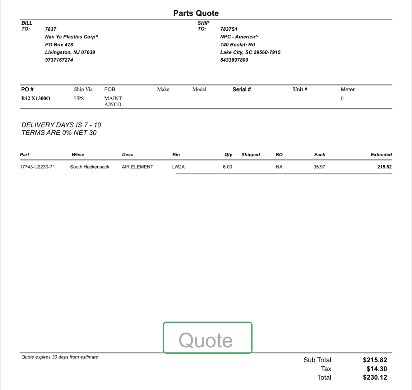 By default, quotes will display the verbiage “Quote” at the bottom of the document.