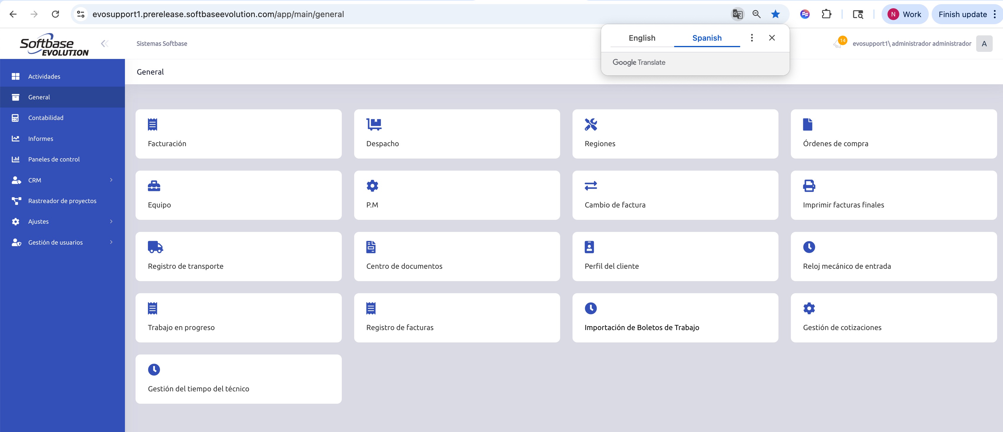 There isn't an official language setting option within Evolution, but on the web interface you can use Google Chrome’s built-in translation service or plugin to convert the page to Spanish as needed.