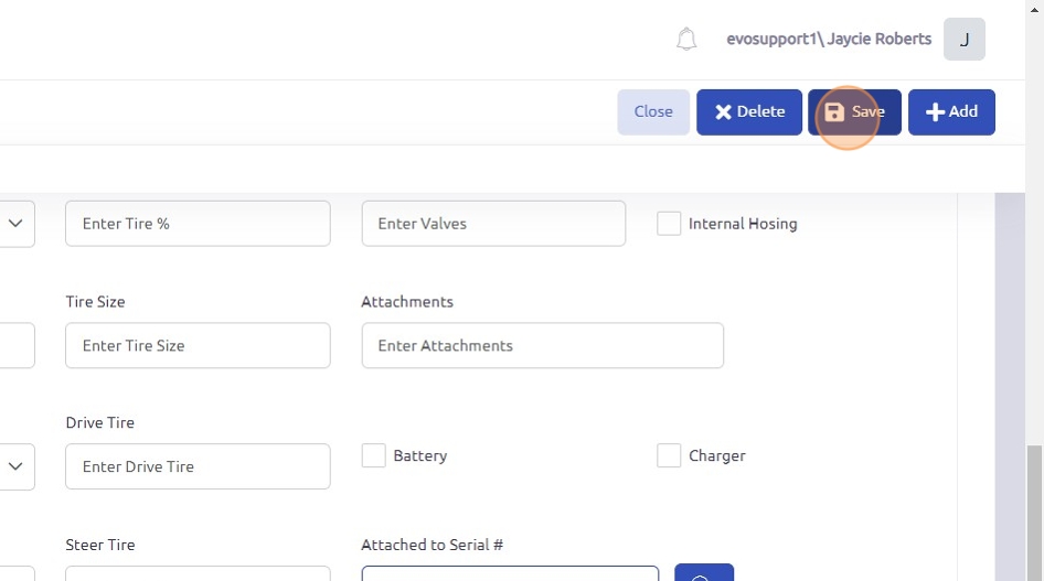 5. Enter in the Parent equipment serial number into the Attached To Serial # field