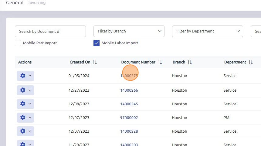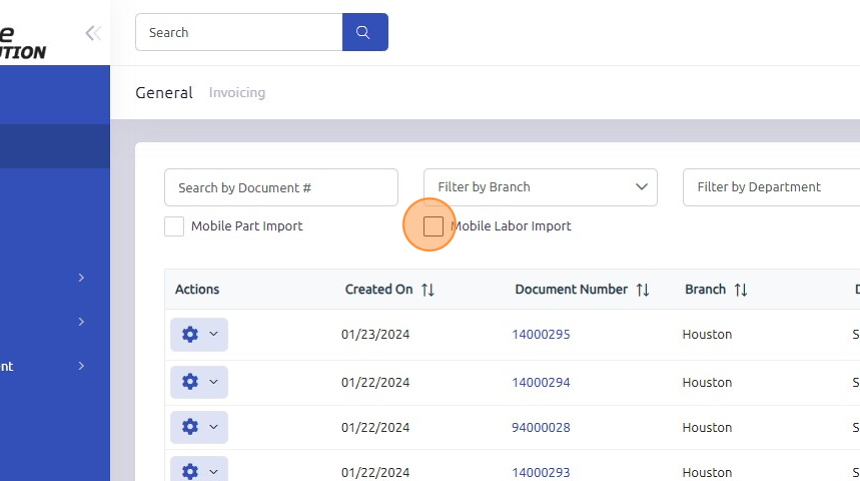 2. Click Search. This will return a list of documents with mobile labor needing to be imported.