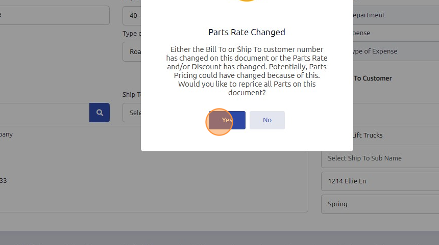5. At this point, the system will prompt you to update any special pricing associated with the new Bill To customer.