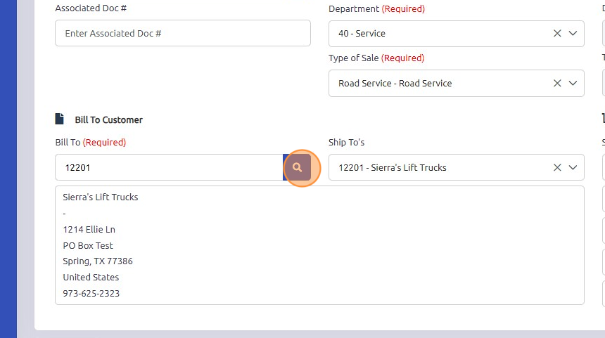 Follow the same steps to update the Ship To Customer on the right side of the document header.