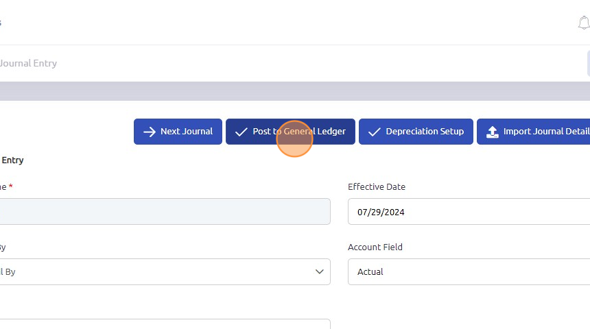 3. To post the Depreciation Journal, navigate to Accounting > Journal Entry > + Journal Entry