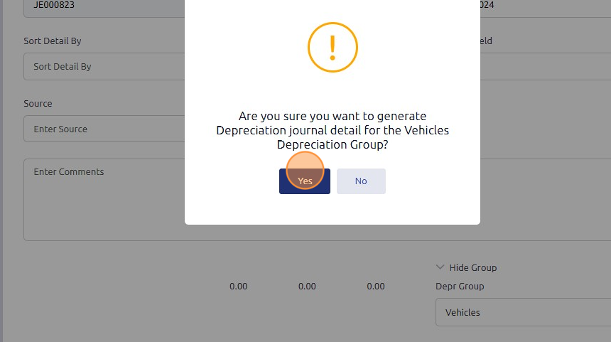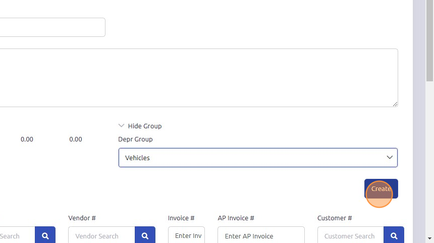 8. Click "Create" to generate the debit/credit entries for each asset in the selected depreciation group.