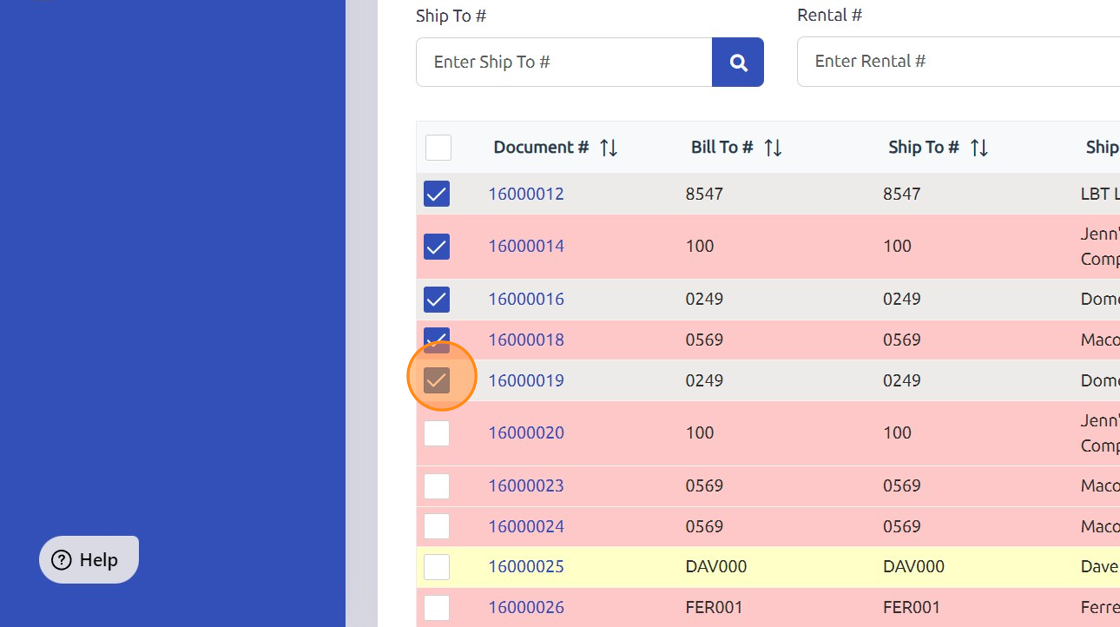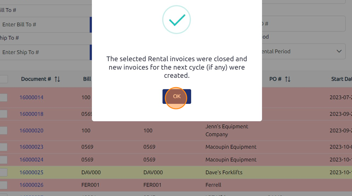 Note: Documents highlighted in red indicate the customer is over their credit limit; these documents will not be invoiced. Documents highlighted in yellow indicate the last invoice for the contract period; no reoccurring document will be opened.