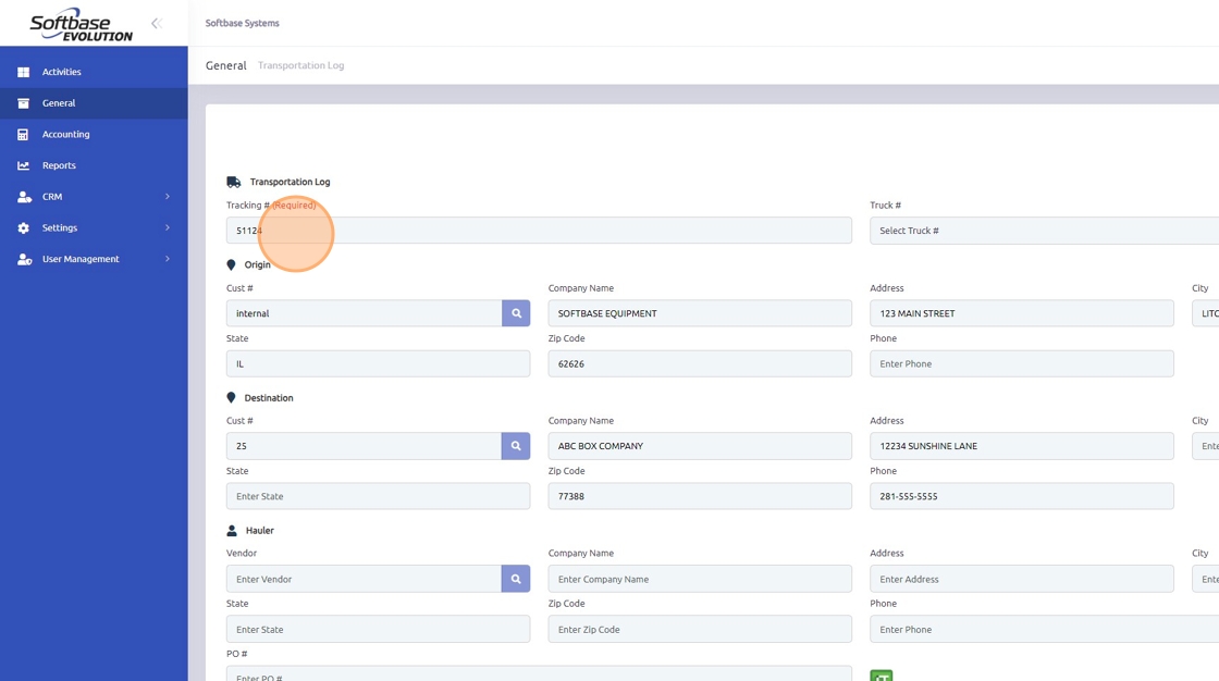 3. Ensure the origination, destination and unit information are all correct. If there are any mistakes, you can edit the tracking number and save before creating the bill of lading.