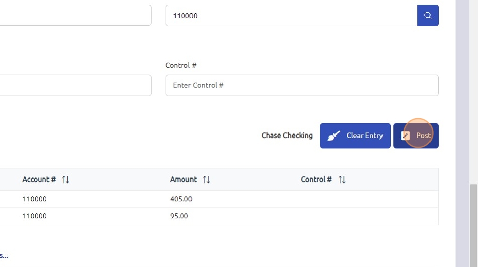 10. Once the check total balances with the details entered, the "Post" button will appear. If this button does not appear, it indicates that something is out of balance and needs to be reviewed.