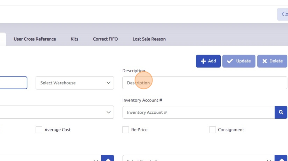 4. Click the "Description" field and enter the desired description. Example, Van 205 is my service van/warehouse, but it is assigned to Bob, description could be Van 205- Bob.