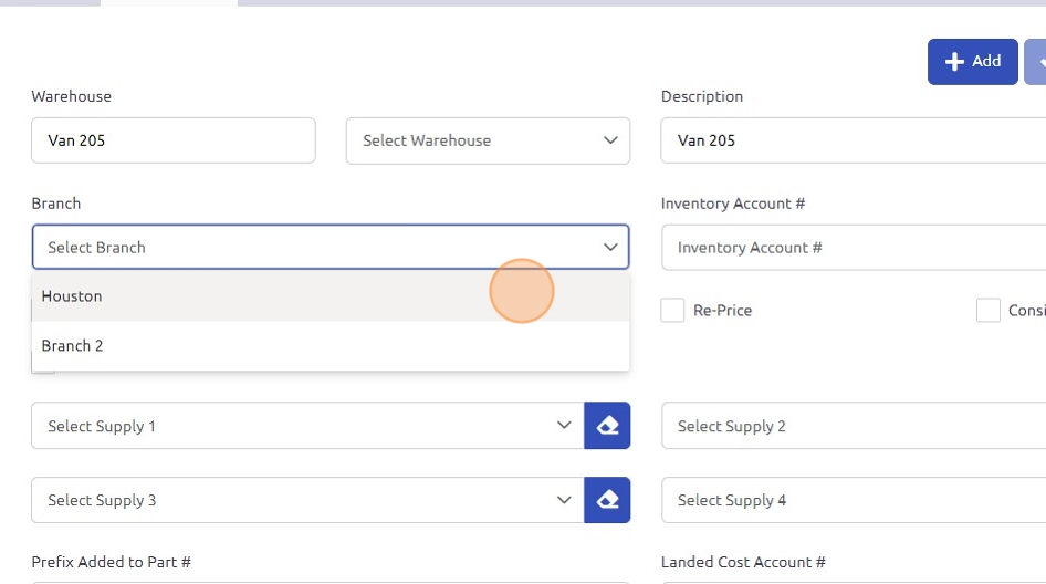 5. Utilize the Branch drop-down menu to select the correct Branch this van is assigned to.