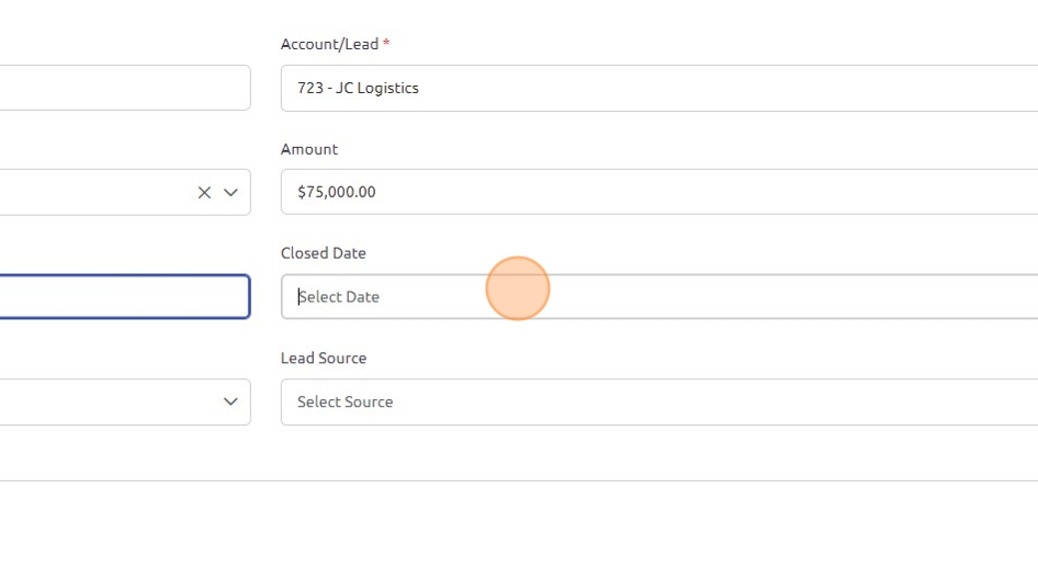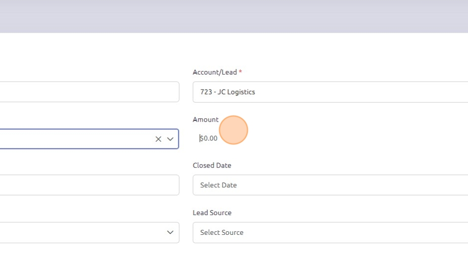 8. Click the "Amount" field and enter the proposed amount for this deal.