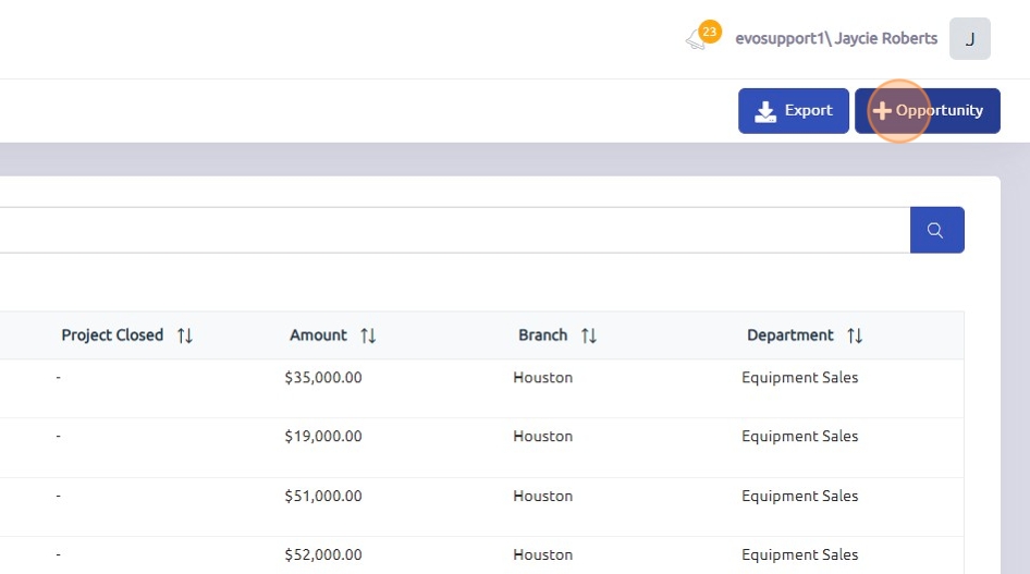 4. To add a new opportunity, click "+ Opportunity"