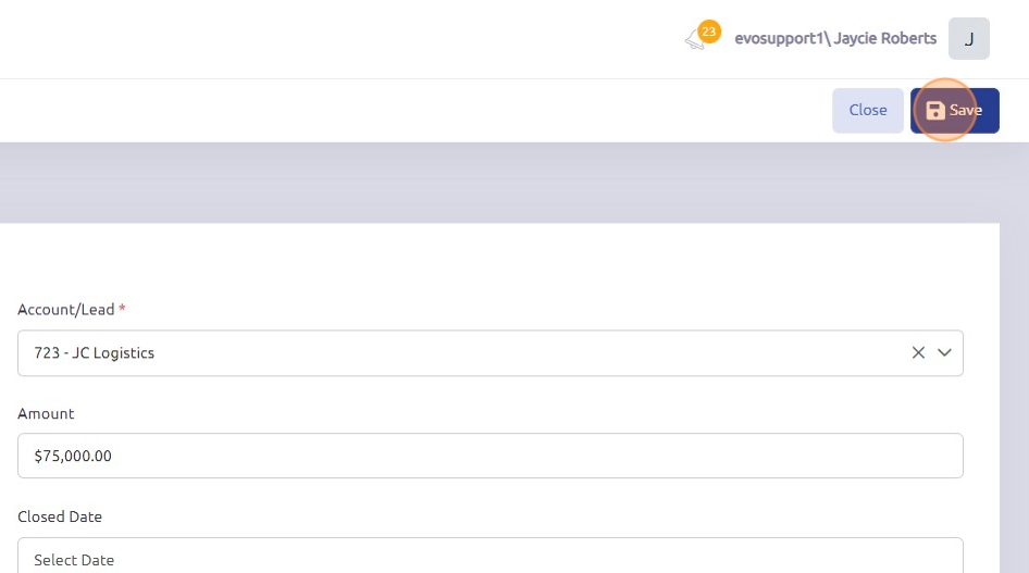 15. Click "Save" to save the opportunity.
