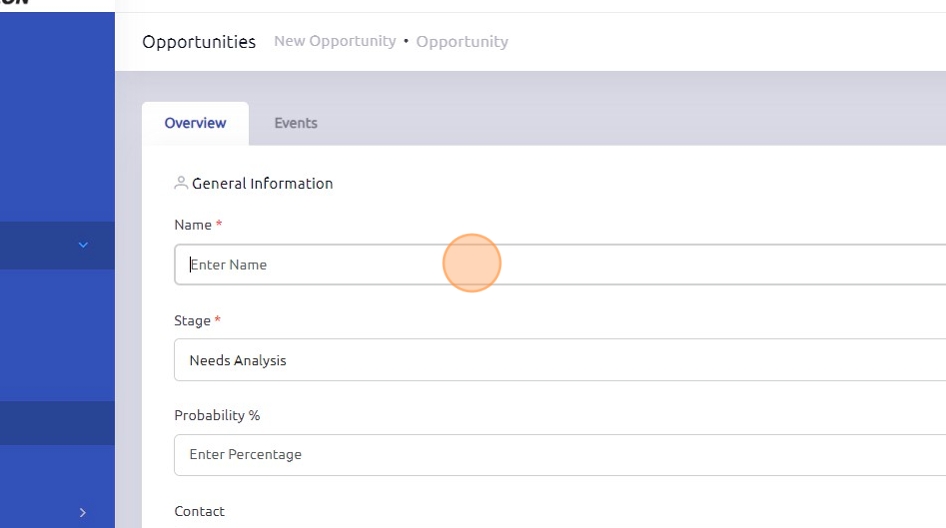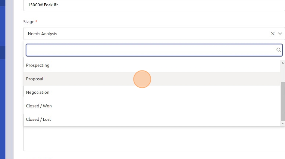 7. Utilize the "Stage" drop-down menu to select the current stage of the opportunity.
