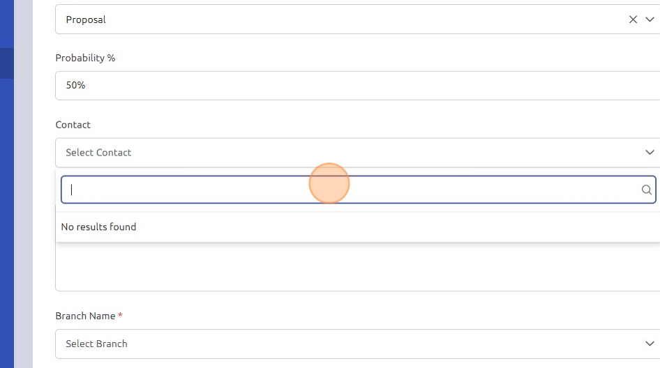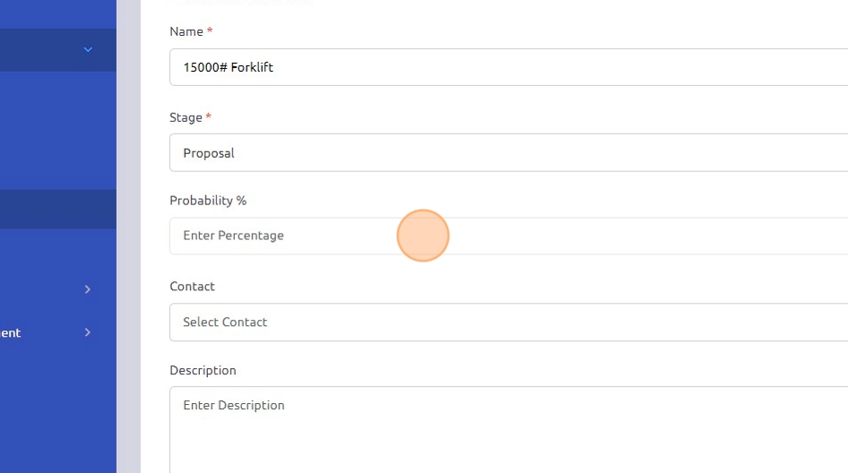 9. Click the "Enter Percentage" field and input the current probability of winning this opportunity.