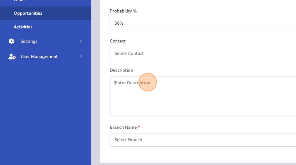 13. Click the "Description" field to enter any pertinent details for this opportunity.