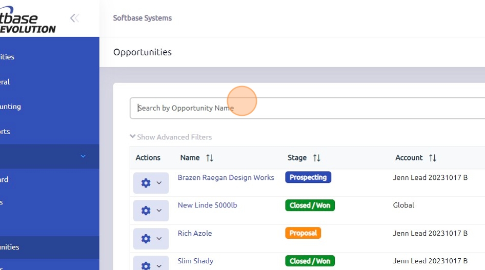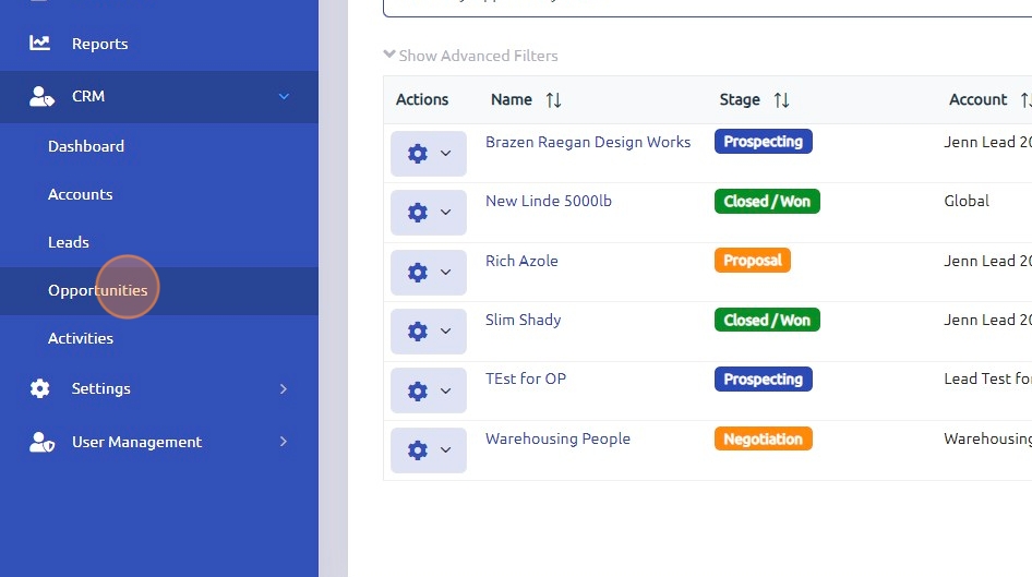 To access, click Opportunities in the CRM section.