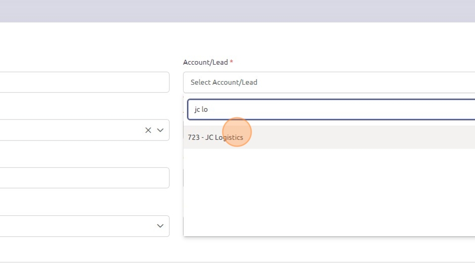 6. Use the "Account/Lead" drop-down menu to search for and select the customer associated with this opportunity.